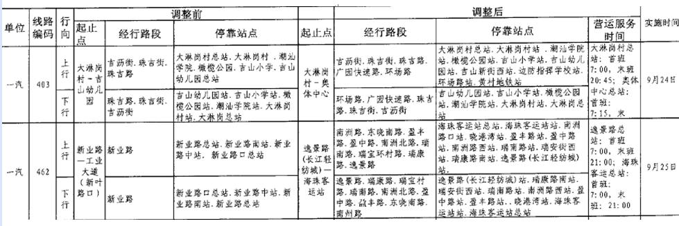 一、調整我公司403路、462路2條線(xiàn)路設置,具體線(xiàn)路起止點(diǎn)、經(jīng)行路段、??空军c(diǎn)及營(yíng)運計劃等調整情況見(jiàn)附件。