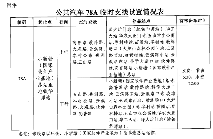 附件:公共汽車(chē)78A臨時(shí)支線(xiàn)設置情況表