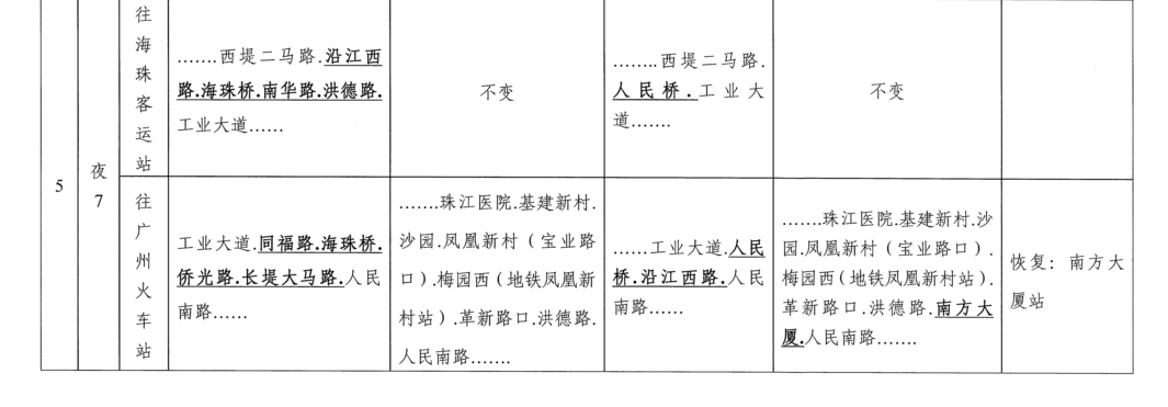 一、公共汽車(chē)夜7路恢復通行人民橋,取消繞行海珠橋等路段,具體恢復情況及??空军c(diǎn)變化情況詳見(jiàn)附件。